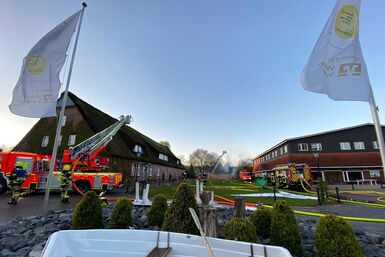 Großbrand auf Golfplatz in Prisdorf: Feuerwehr hält zwei brennende Reetdachhäuser