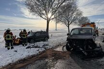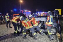 Bei einem schweren Verkehrsunfall sind fünf Personen schwer verletzt worden. Sie waren mit ihrem Pkw gegen einen Baum geprallt. Es folgte ein Großeinsatz mit vier Feuerwehren und zahlreichen Rettungsdienstkomponenten
